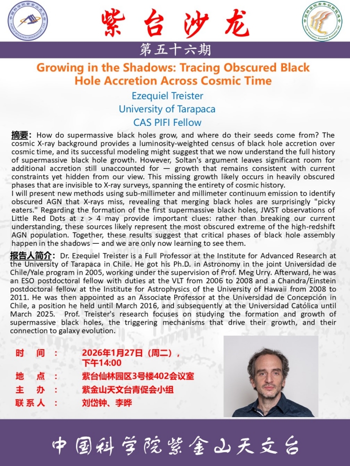 “紫台沙龙”第五十六期:Growing in the Shadows: Tracing Obscured Black Hole Accretion Across Cosmic Time