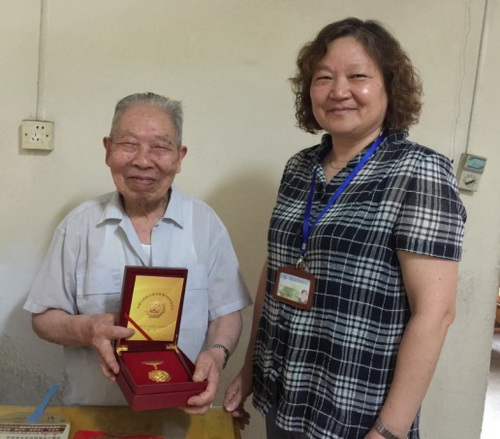 看望期间,张丽萍一行先后来到抗战时期参加革命工作的老同志赵文彪和刘以书家中,详细询问了他们的身体状况和生活情况。看到二位老人一个已近九旬,一个已过九旬,但都仍然精神矍铄,大家十分高兴。随行看望的同志们仔细倾听了老同志们的革命经历,了解到艰苦卓绝的战争年代,他们转战南北,参加了大大小小无以计数的战斗,至今身上还留着弹片,阴雨天仍隐隐作痛……大家深刻认识到没有他们的出生入死和英勇奋斗,就没有我们今天的幸福生活。他们在抗日战争中英勇战斗、浴血奋战,为实现民族独立和人民解放做出了重要贡献。张书记为他们送上了抗战胜利70周年的纪念章及慰问金,祝愿他们健康长寿。老同志们对党和国家的关怀表达了真挚的感谢之情。