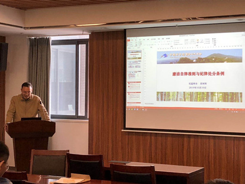 台纪监审办主任任树林同志做了题为《廉洁自律准则与纪律处分条例》的专题廉政报告,对党的廉洁自律准则与纪律处分条例进行了深刻的解读,并用一些真实的例子生动地阐述了新时代共产党员应该如何去认识公私关系,如何去提高自己的廉洁意识,如何在生活上和工作中充分发扬党员的廉洁自律精神。