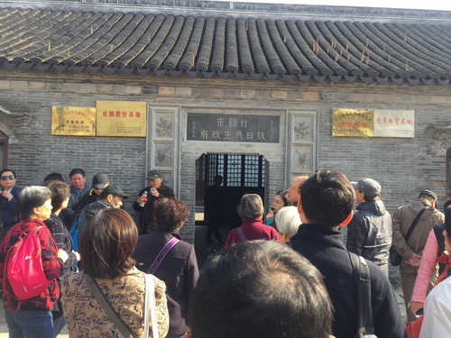 大家首先参观了“竹镇市抗日民主政府旧址”。馆内陈列了新四军五支队在竹镇地区开展抗日活动的有关图片100多幅,实物200多件,再现了老一辈无产阶级革命家的丰功伟绩。展出了方毅、吴学谦、李代耕以及各级老一辈领导在解放后视察和参观“竹镇市抗日民主政府旧址”的照片和题词;大家重温抗日革命历史,学习革命先烈的先进事迹。