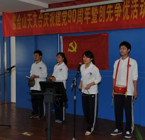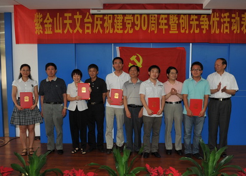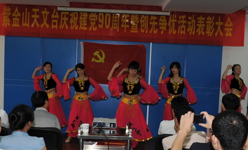 2011年6月30日下午,紫金山天文台隆重举行庆祝建党90周年暨创先争优活动表彰大会,并开展了“红歌献给党”文艺汇演。四楼会议室内济济一堂,全台160余名党员以及民主党派代表、职代会代表等出席大会。