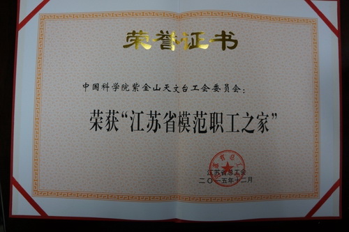 日前,在江苏省总工会十三届四次全委(扩大)会议上,紫金山天文台被江苏省总工会授予“江苏省模范职工之家”荣誉称号。