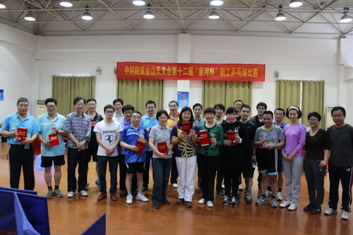 比赛受到了紫台广大职工的积极响应,台领导、研究员、部门负责人等及各年龄层次选手纷纷踊跃报名参赛。比赛分为男、女六个小组进行小组循环,小组前两名选手晋级下一轮,经过近一天九轮的激烈角逐,比赛产生了男子前八名、女子前四名。马涛、陈雪梅分获获得了男女单打第一名、江治波等七人分获男子单打二至八名、吕顺莲等三人分获女子单打二至四名,赛后举行了隆重的颁奖仪式,台长杨戟分别给获得男、女单打第一名的选手颁发了奖杯、荣誉证书和奖金;副台长常进、毛瑞青分别给其他获奖选手颁奖,至此紫台第十二届“星河杯”职工乒乓球比赛圆满落下帷幕。