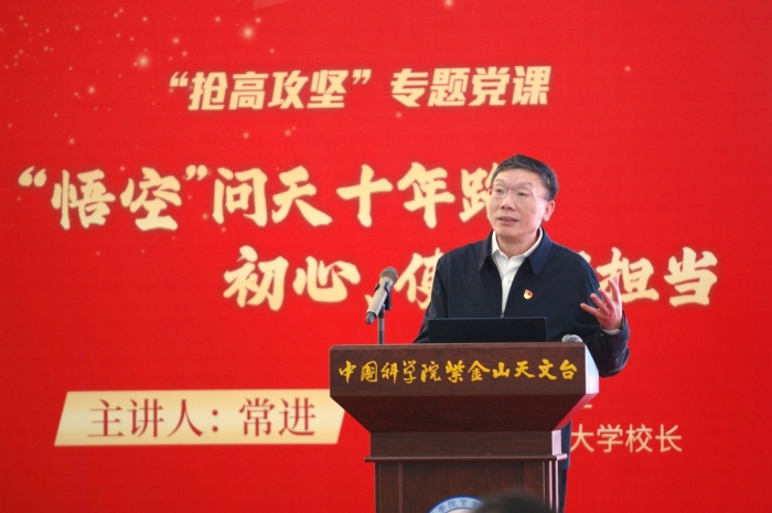 12月17日,我国首颗空间天文卫星“悟空”号暗物质粒子探测卫星迎来在轨运行十周年之际,中国科学院紫金山天文台举办“抢高攻坚”专题党课。“悟空”号卫星首席科学家常进院士以“‘悟空’问天十年路:初心、使命与担当”为题,回溯中国空间天文探索征程,凝聚科技强国奋进力量。紫金山天文台领导班子、“悟空”号研制团队、职工学生代表和参研单位代表共约240多人参加。