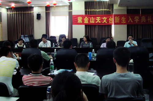 在丹桂飘香的九月,十八名博士、二十六名硕士研究生共四十四名新生来到紫金山天文台这个大家庭,他们的到来又为正处于改革的紫台带来了新的青春气息和活力。9月5日下午,紫金山天文台在四楼会议室隆重举行了2014级新生入学典礼仪式,这也是新同学入台学习的第一课。党委书记张丽萍、副台长常进、综合办主任朱爱仲、研究生部吕静老师、金璐老师以及新生导师代表出席了此次典礼。