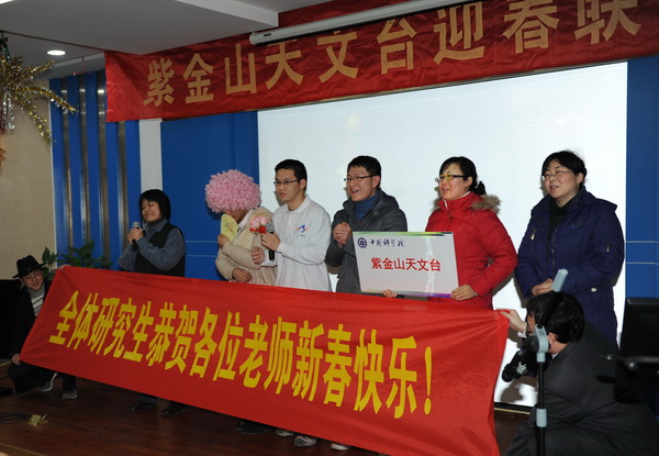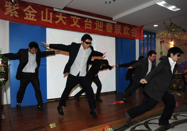 欢声笑语辞旧岁,踏歌起舞迎新春。2011年1月21日下午,紫金山天文台迎春联欢会在四楼大会议室举行。紫台领导班子成员与本部职工、研究生们约300余人欢聚一堂,辞旧迎新,共庆新春佳节。