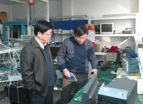 曹苏民一行还参观了暗物质与空间天文实验室、毫米波与亚毫米波技术实验室,为相关技术的推广应用提出了建设性的意见。