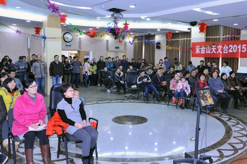 万马奔腾的马年即将过去,为了喜迎羊年的到来, 2月13日下午紫金山天文台大楼多功能厅张灯结彩、喜气洋洋紫金山天文台工会、团委、研究生会在这里联合举办2015年新春联欢会,共有200多名职工和研究生兴高采烈地参加了联欢会。
