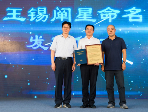 颁发王锡阐星命名铜匾和命名证书