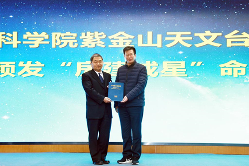 杨戟向房建成颁发“房建成星”命名证书