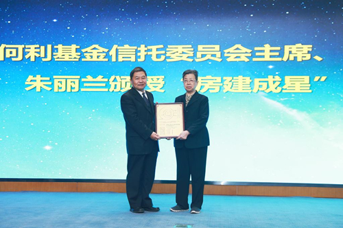 朱丽兰向房建成颁授“房建成星”命名铜匾