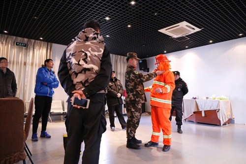 武警指导、示范消防服的穿戴