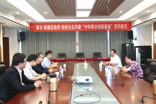 7月19日上午,紫台-鼓楼区政府-倍格生态共建“中科紫台创新基地”签约仪式在紫台举行,三方共同签署了关于倍格创业生态科技(西安)股份有限公司入驻南京市鼓楼区与中国科学院紫金山天文台共建中科紫台创新基地合作备忘录。