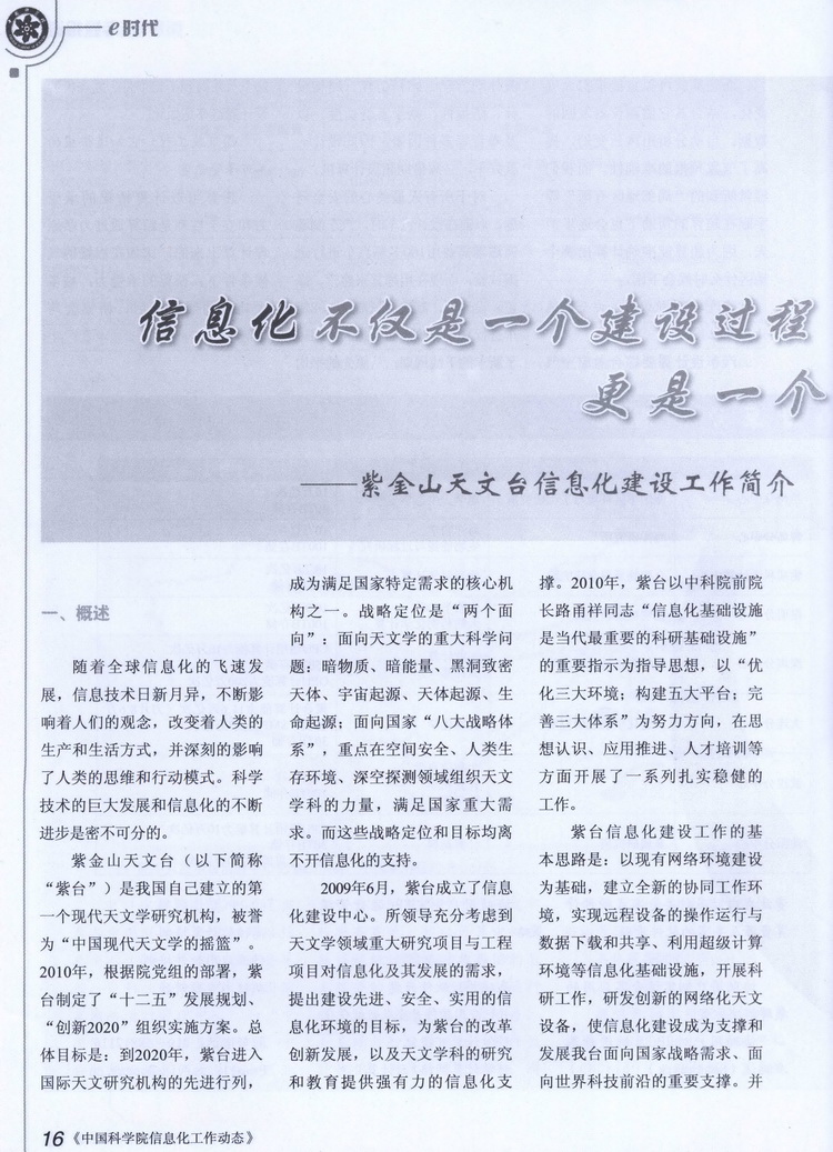 --紫金山天文台信息化建设工作简介