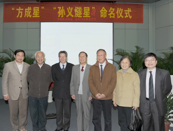 命名仪式上,紫台副台长甘为群宣读了国际命名公报并向方成院士、孙义燧院士赠送了国际命名公报。常务副台长杨戟致贺词并赠送命名证书和命名铜匾。杨戟代表紫金山天文台向荣获小行星国际命名的方成院士、孙义燧院士和南京大学师生表示热烈祝贺。他说,方成院士、孙义燧院士为我国天文学的发展作出了显著贡献,荣获小行星国际命名完全是实至名归。南大洪银兴书记在致辞中表示,感谢紫金山天文台给予南京大学系列小行星命名的支持。南京大学将全力支持、尽快落实南大、紫台、天光所共建南京仙林空间科学技术园区的有关工作。