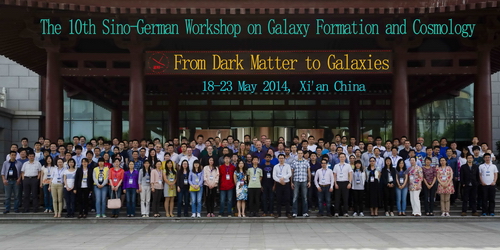 2014年5月18-23日,第十届中德星系宇宙学国际会议“从暗物质到星系”在西安召开,来自10多个国家和地区的约170名代表出席。本次会议由中国科学院紫金山天文台和德国马普天文所联合成立的中德马普伙伴小组主办。会议得到了科学院B类先导项目“宇宙结构起源专项”和德国马普学会支持。