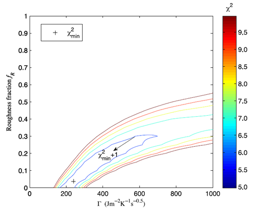 图1 Bennu小行星热惯量与粗糙度在二维参数空间分布