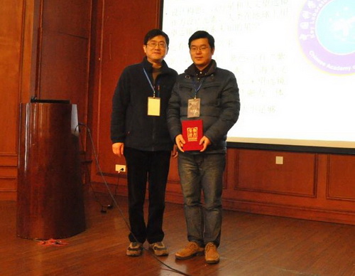 为鼓励青年才俊勇攀科研高峰,中科院行星科学重点实验室自2014年起特设立了实验室优秀青年人才奖。来自紫金山天文台的赵金松博士因其在太阳和空间物理方面的扎实研究和突出贡献,获得了2015年度该项奖励。会上实验室主任廖新浩研究员为获奖者颁发了证书,以资鼓励。