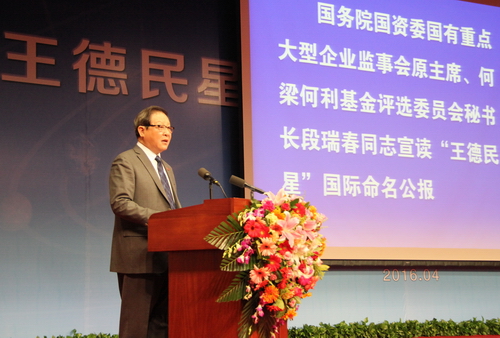 段瑞春宣读“王德民星”国际命名公报