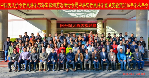 2016年11月30日-12月2日,“中国天文学会行星科学与深空探测前沿研讨会暨中科院行星科学重点实验室2016年学术年会”在云南丽江顺利召开。此次会议由中国天文学会行星专业委员会与中科院行星科学重点实验室主办、由中科院紫金山天文台承办,云南天文台协办。来自英国 Exeter大学、南京大学、北京大学、中国地质大学(武汉)、澳门科技大学、中科院国家空间科学中心、紫金山天文台、上海天文台、国家天文台、云南天文台、中国空间技术研究院及北京航天飞行控制中心等23家单位,100多位代表参加了会议。
