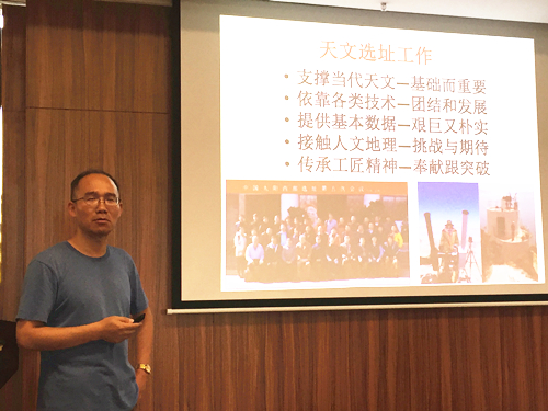 图1. 报告人展示天文选址工作的内容和意义