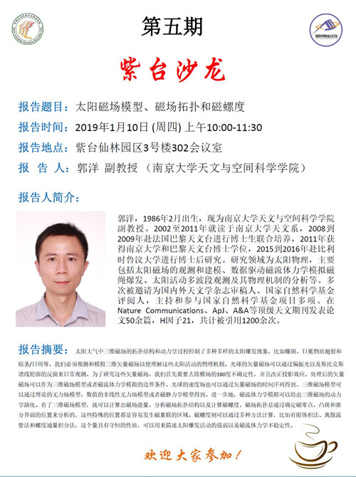 1月10日 “紫台沙龙”第五期:太阳磁场模型、磁场拓扑和磁螺度