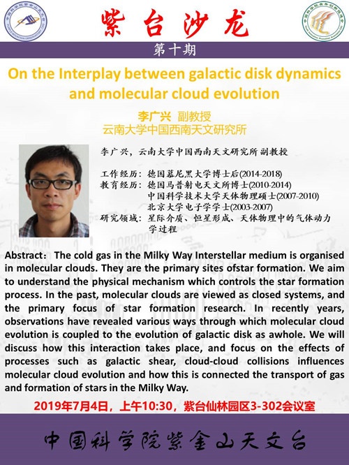 7月4日 “紫台沙龙”第十期:On the Interplay between galactic disk dynamics and molecular cloud evolution