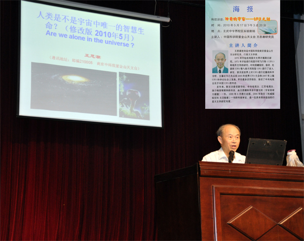 5月17日和21日下午,紫金山天文台王思潮研究员分别来到南京市玄武中等专业学校和南京外国语学校,为近千名师生作了题为“人类是不是宇宙中唯一的智慧生命”的科普报告。