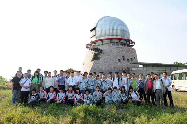 在中国科学院第七届公众科学日期间,紫金山天文台科普部专门举办了“天文科普之旅”活动,精心组织了南京一中、南师附中和常州高级中学的师生及中央和地方媒体的记者一行约60人,到紫金山天文台盱眙近地天体观测基地参观学习。