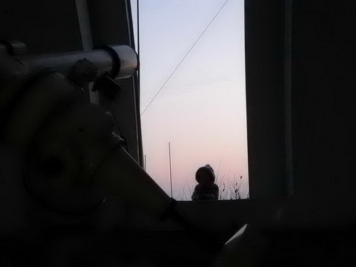 让父亲把他抱在天窗上,好奇地打量圆顶内的望远镜。