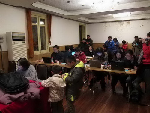 媒体工作室,记者们现场发稿,新浪网进行图文和微博直播