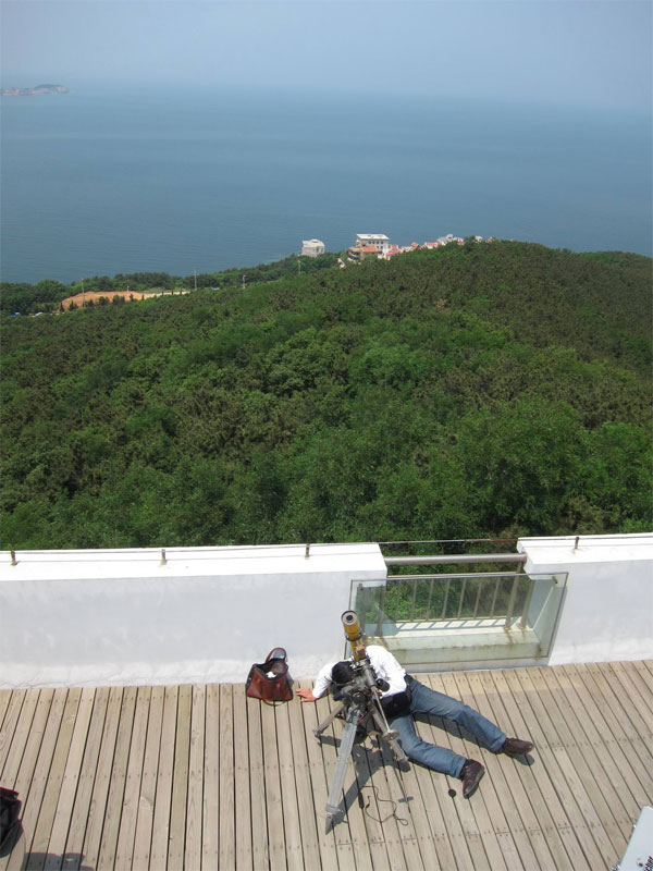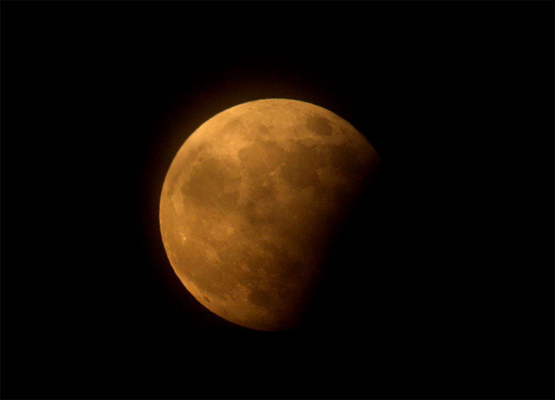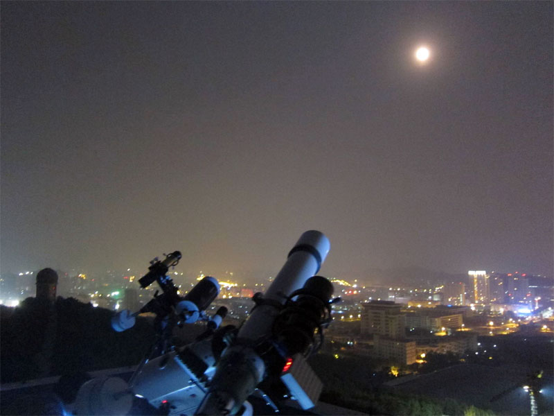 紫台赴威海观测队在途中恰逢月偏食,临时停车拍摄的月偏食照片