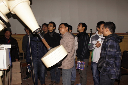 2012年11月11日星期天,紫台研究生科普兴趣小组在紫金山天文台开展了第一次观星活动。本次活动由紫台研究生科普兴趣小组主办,并得到了紫台研究生部、科普部的大力支持。此次活动还特邀天仪公司的专家参加并为大家讲解望远镜的使用和星空的相关知识。紫台科普兴趣小组成员与南大天文与空间科学学院的研究生参加了本活动。
