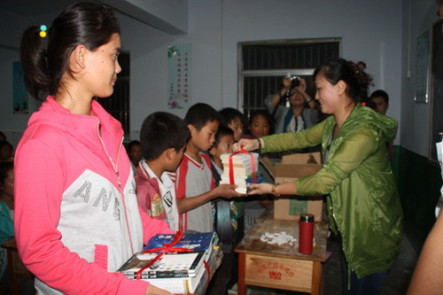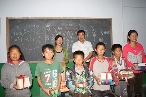 随后,我们向学校赠送了六十余本天文科普书籍,如《天文学基础》、《天文爱好者》杂志、《教你认星星》、《图解天文学》、《星座与希腊神话》等,以及活动星座图、《黄道十二宫》星盘,太阳眼镜等。从孩子们惊喜的目光中,我们看到了他们对天文知识的渴望。