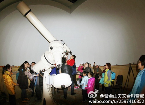 2014年3月15日,南京持续多日的雾霾和阴雨天终于有所好转,紫金山天文台科普部利用这难得的好天气,为南京苏杰学校三十多名小天文爱好者和家长举办了2014年首场夜间观星活动。
