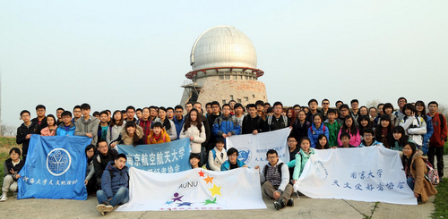 大学生在近地天体观测楼前合影