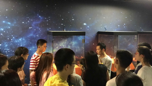 本次活动主要分为四个部分:参观陨石展、紫台紫金山园区、太阳射电频谱仪观测室及望远镜及科普报告。首先来自紫台天体化学和行星科学实验室的研究生王科超对照陨石实物详细讲解了陨石的由来、陨石的种类按化学成分及特性。讲解员樊莉平用生动的语言向大家讲述了紫台的发展历史,并重点讲解了紫金山园区里的优秀民国建筑和陈列在紫台的明清古代天文仪器:天球仪、浑仪、简仪和圭表。随后大家参观了太阳射电频谱仪观测室,紫台太阳活动的多波段观测研究团组的周团辉博士向大家介绍了射电天文的基本常识、射电望远镜的工作原理以及近年来紫台太阳射电望远镜观测研究的内容和成果。在紫台报告厅,周团辉博士作了题为《太阳——我们的恒星》科普报告,报告讲解了从古代太阳研究,到当今通过电磁波辐射了解太阳,以及太阳活动对人类的影响等方面的科学知识。报告内容穿插着大量的精彩视频,科普性与专业性相结合,风趣幽默的讲解深深打动了与会听众,赢得了阵阵掌声。