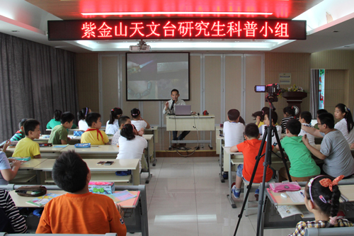 2015年9月23日下午,紫金山天文台研究生天文科普兴趣小组三名成员应邀来到南京市中央路小学,由紫台天体化学与行星科学实验室的研究生王科超为100多名五年级师生作了题为《天外来客——陨石》的科普报告。
