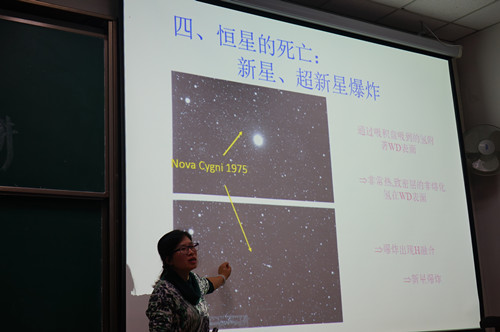 当晚,中国石油大学讲堂群203教室鸦雀无声,大学生、中小学生和家长们,正在静静的聆听一场关于恒星演变的讲座,主讲人是中国石油大学副教授、哈佛大学天文学博士后马素丽。