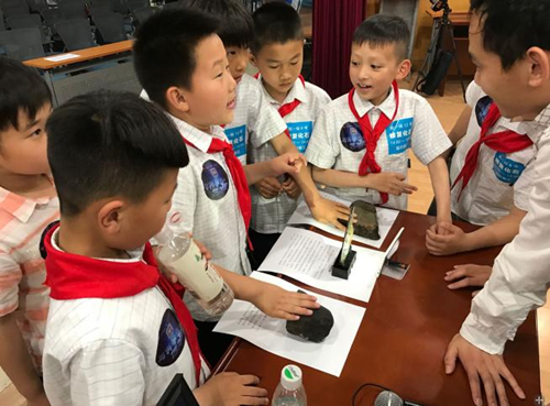 与此同时,在报告厅里,紫台的王科超正在为学生和家长们讲关于陨石的科普报告。由于前一日有媒体报道有人由于不熟悉陨石的科学知识,盲目收集了很多假陨石而至妻离子散,为了使大家对陨石有一个科学的认识,防止类似的遗憾事件发生。王科超的报告详细介绍了陨石的来源、陨石的分类和研究陨石的重要科学意义,重点强调了陨石的手标本鉴定特征,讲述了紫台的陨石专家们使用科学仪器鉴定、研究陨石的过程。报告语言生动活泼,现场气氛非常活跃,使得在场的学生和家长对陨石有了一个比较清晰的认识。有些家长还对报告进行了录像,表示不想让孩子错过这些受益匪浅的知识。王科超提醒大家,购买陨石之前,应该多多学习一些陨石相关的科学知识,谨慎购买。报告结束后,学生和家长们围在了从紫台实验室带来的三块陨石样品周围,触摸天外来客,交流有关陨石的知识。