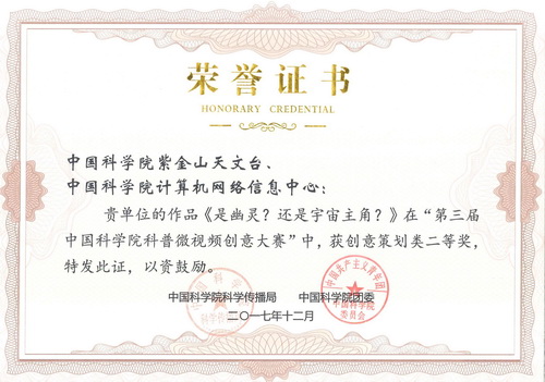 近日,中国科学院第三届科普微视频创意大赛结果出炉,紫台报送的科普视频《是幽灵?还是宇宙主角?》,获得二等奖(创意策划类)。该视频紫台袁强研究员和中科院计算机网络信息中心共同创作。