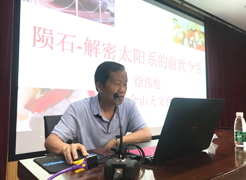 2018年9月22日上午,中科院紫金山天文台徐伟彪研究员在南京中山植物园的植物博物馆报告厅为市民作了题为《陨石——解密太阳系的前世今生》的科普报告。此次活动是由紫金山天文台、南京中山植物园和南京天文爱好者协会、南京市科协共同举办的。