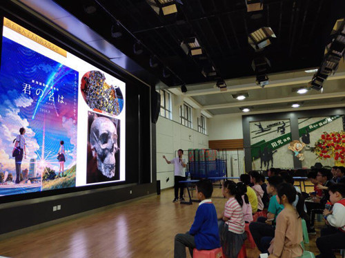 紫台科普部主任张旸5月21日在南京金陵汇文小学作了一场题为“人类太空探索的故事”的科普报告。
