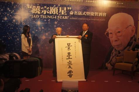 九十六岁的学术泰斗饶宗颐教授,是蜚声国际的汉学大师。经国际小行星命名委员会批准,紫金山天文台将1978年10月30日发现的、国际编号为10017号小行星命名为“饶宗颐星”。