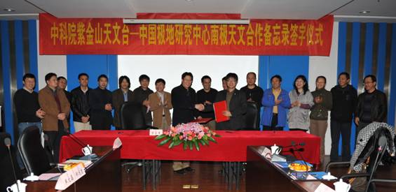 2011年11月29日,中科院紫金山天文台和中国极地研究中心南极天文合作备忘录签字仪式在紫金山天文台举行。出席签字仪式的人员有:中科院基础局刘鸣华局长,中国极地研究中心杨惠根主任携相关部门负责人,南京天文光学技术研究所相关部门负责人和研究人员,紫金山天文台杨戟台长、甘为群副台长及相关部门负责人和研究人员。